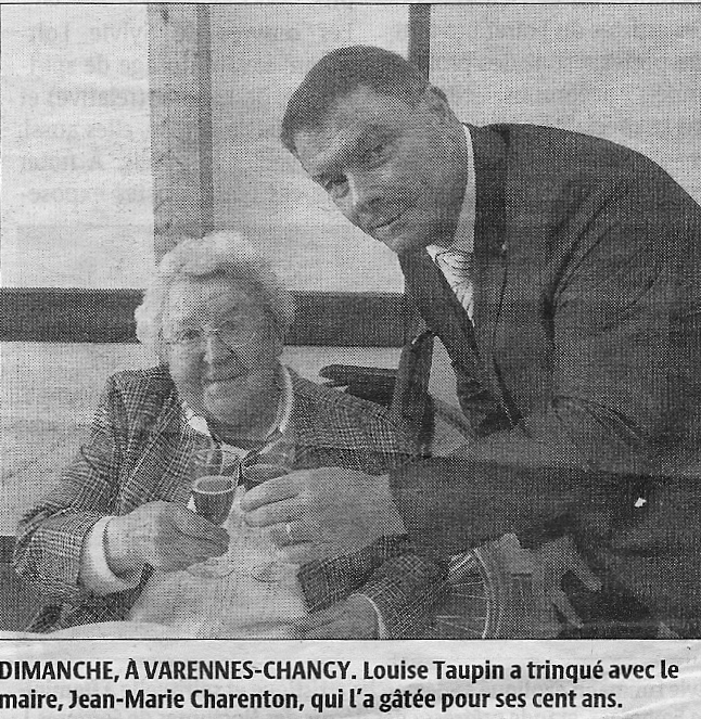 Louise Taupin n'est arrivée à Varennes-Changy qu'à l'heure de la retraite, après quarante-quatre années de travail comme concierge à Paris. Elle y a fait plusieurs maisons, comme elle dit dans le 16e arrondissement surtout, avenue Kléber et rue Copernic, puis au Pérou. Mais ici, la retraite n'a pas sonné de suite, car Louise Taupin a encore donné la main au restaurant local, travaillant jusqu'à presque 70 ans. Et à 76 ans, elle passait son permis de conduire!