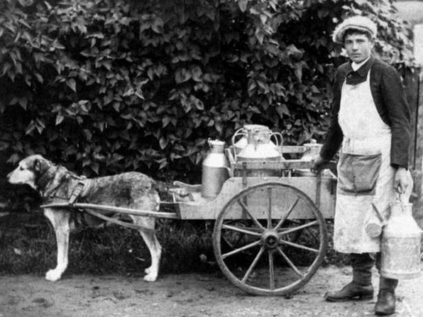 Quant à son mari, Léon, il était ouvrier agricole : sur une très ancienne photo faisant la couverture d'un ancien bulletin municipal du village, on le voit livrant du lait avec un chariot tiré par un chien (1910).