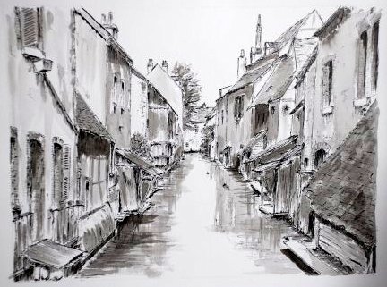 Représentation des rues sur l’eau de Montargis de Jean Milet
